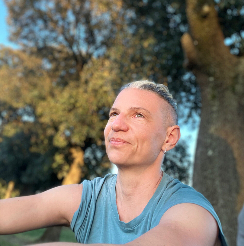 Maria F. Scaroni (sie/ihr) ist eine Tanzkünstlerin. Sie entwickelt und interpretiert choreografische Arbeiten, die in improvisatorischen Praktiken und veränderten Bewusstseinszuständen verwurzelt sind. In ihren Workshops lenkt sie postmoderne Tanztraditionen in Richtung Technologien gegenseitiger Ermächtigung und verbindet somatische Praktiken mit Anti-Unterdrückungsansätzen, um eine Kultur der Verbundenheit zu fördern. Seit 2009 arbeitet sie mit Meg Stuart zusammen und tritt in deren Arbeiten auf. Nach dem Kollektiv Lecken, einer erogenen queeren Rave-Veranstaltung, initiiert und betreibt sie das Social Pleasure Center, einen Gemeinschaftsraum für somatischen Post-Aktivismus.Aktuell kollaboriert sie mit der ikonischen Drag-Queen Olympia Bukkakis.