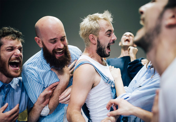 Von Alessandro Sciarroni | Performer*innen: Massimiliano Balduzzi, Gianmaria Borzillo, Marta Ciappina, Jordan Deschamps, Pere Jou, Leon Maric, Cian Mc Conn, Roberta Racis, Matteo Ramponi | Musik: Yes Soeur! | Lichtdesign: Sébastien Lefèvre | Produktion: Marche Teatro, Teatro di Rilevante Interesse Culturale, corpoceleste_C.C.00#, European Creative Hub – French Minister of Culture/Maison de la Danse grant for Biennale de la danse de Lyon 2018, Festival GREC Barcelona, Théâtre de Liège, Teatro Municipal do Porto, Cent-Quatre-Paris, Snaporazverein, Theaterfestival Boulevard, Theater Freiburg (Germany), La Biennale di Venezia | Koproduktion: Tanzfabrik Berlin, Centrale Fies, L'arboreto - Teatro Dimora di Mondaino | Alessandro Sciarroni ist assoziierter Künstler am Cent-Quatre-Paris | Unterstützt durch apap-Performing Europe 2020, kofinanziert durch das Creative Europe Programm der Europäischen Union.